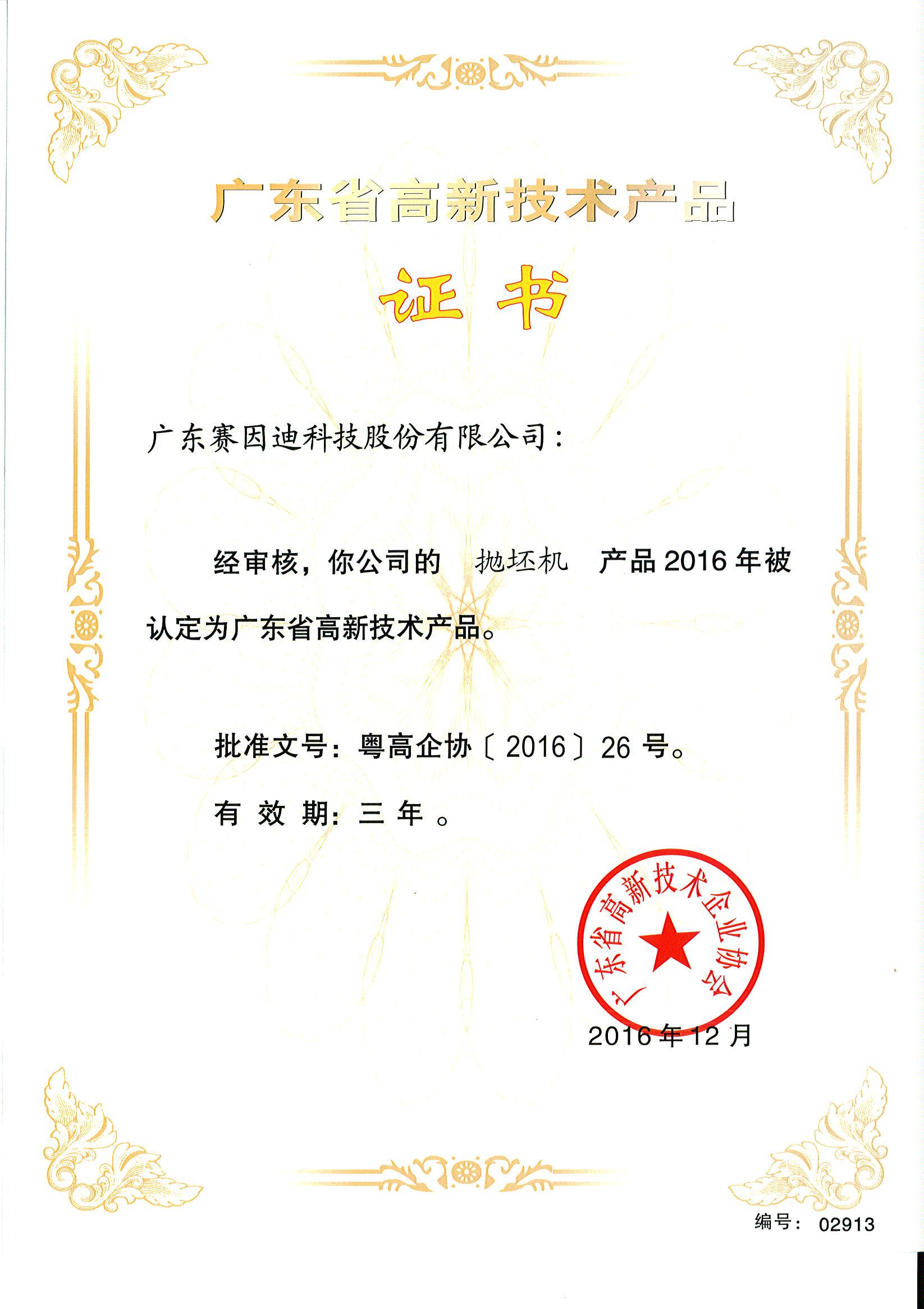 Sinid Technology's Honor-廣東省高新技術(shù)證書-拋坯機(jī)
