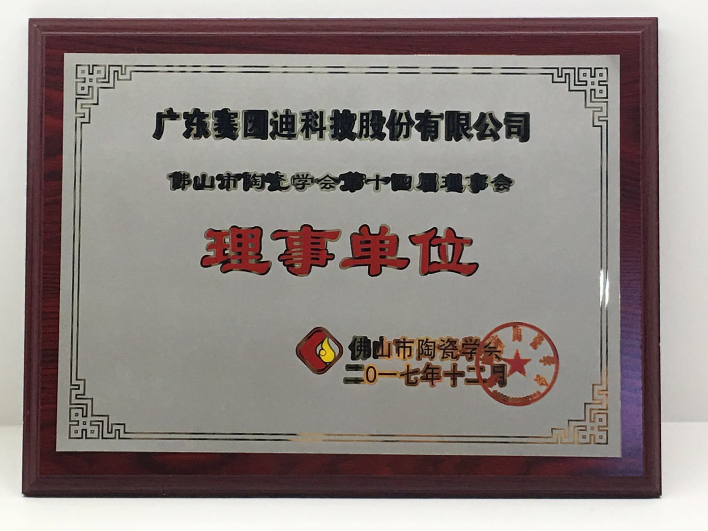 Sinid Technology's Honor-佛山市陶瓷學(xué)會(huì)第十四屆理事會(huì)“理事單位”