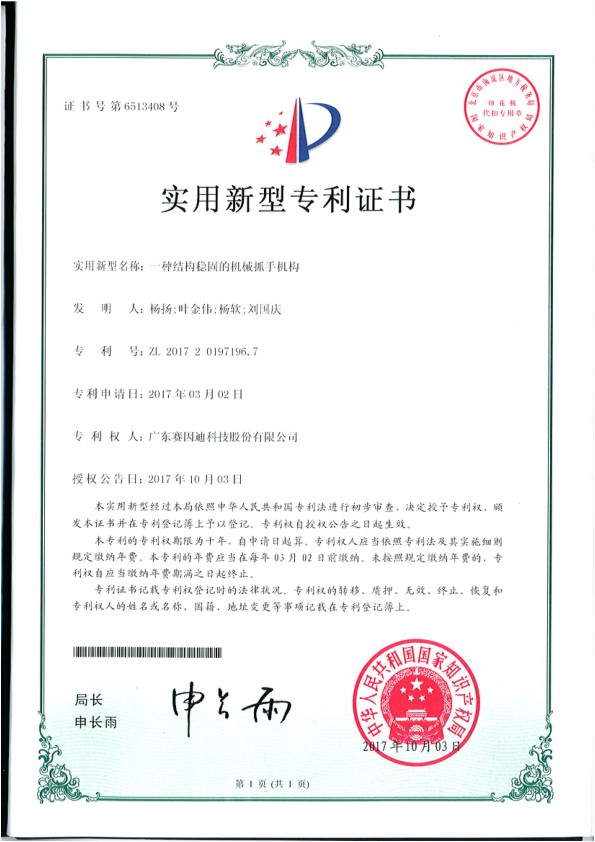 Sinid Technology's Patents-一種結構穩固的機械抓手機構