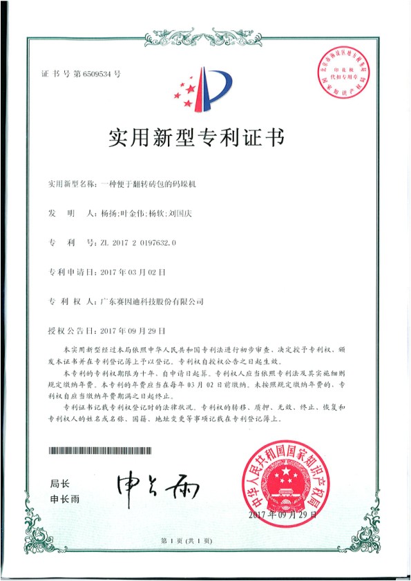 Sinid Technology's Patents-一種便于翻轉磚包的碼垛機