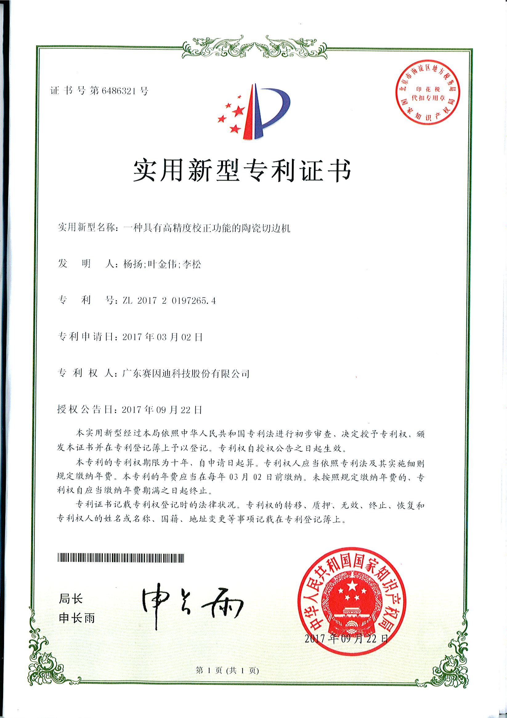 Sinid Technology's Patents-一種具有高精度校正功能的陶瓷切邊機
