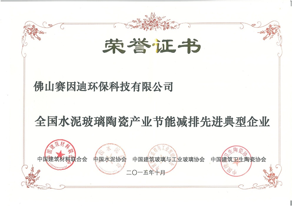 Sinid Environmental Protection's Honor -2015全國水泥玻璃陶瓷產業節能減排先進典型企業