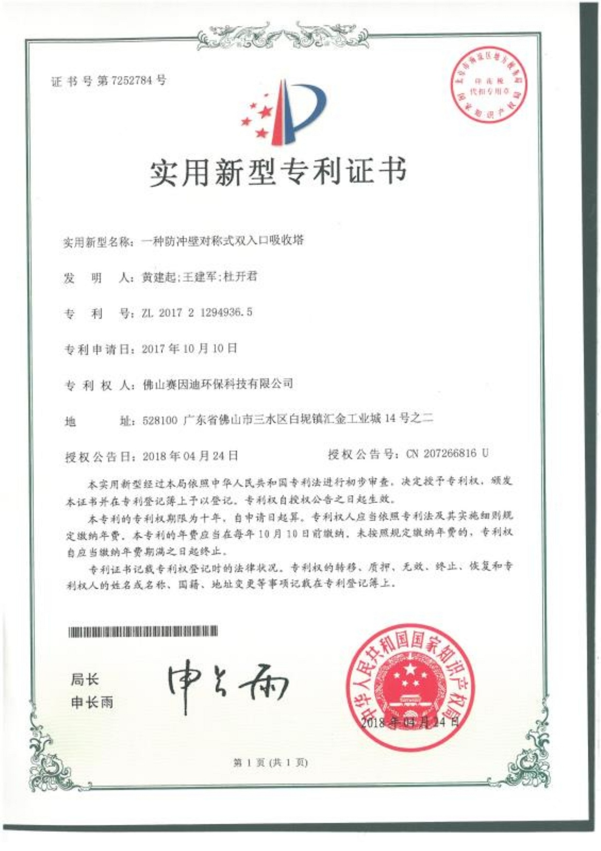 Sinid Environmental Protection's Patents-一種防沖壁對稱式雙入口吸收塔