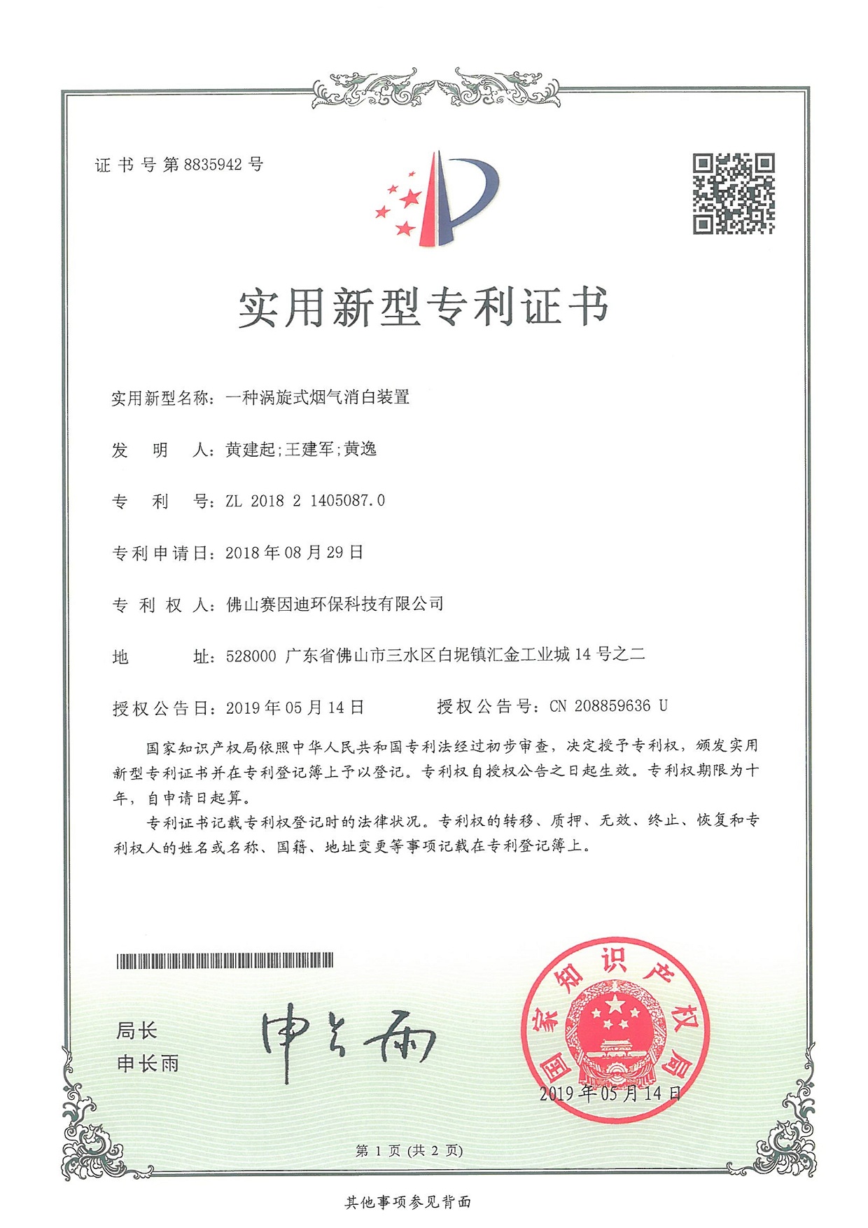 Sinid Environmental Protection's Patents-一種低能耗消白煙裝置