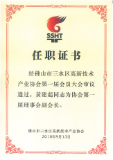 賽因迪科技榮譽-黃建起任命佛山市三水區高新技術產業協會理事會副會長