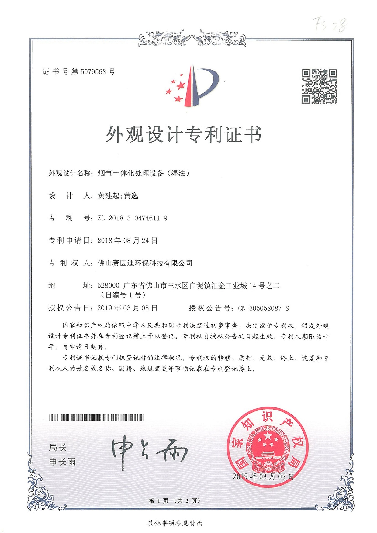 賽因迪環保專利-煙氣一體化處理設備(濕法)