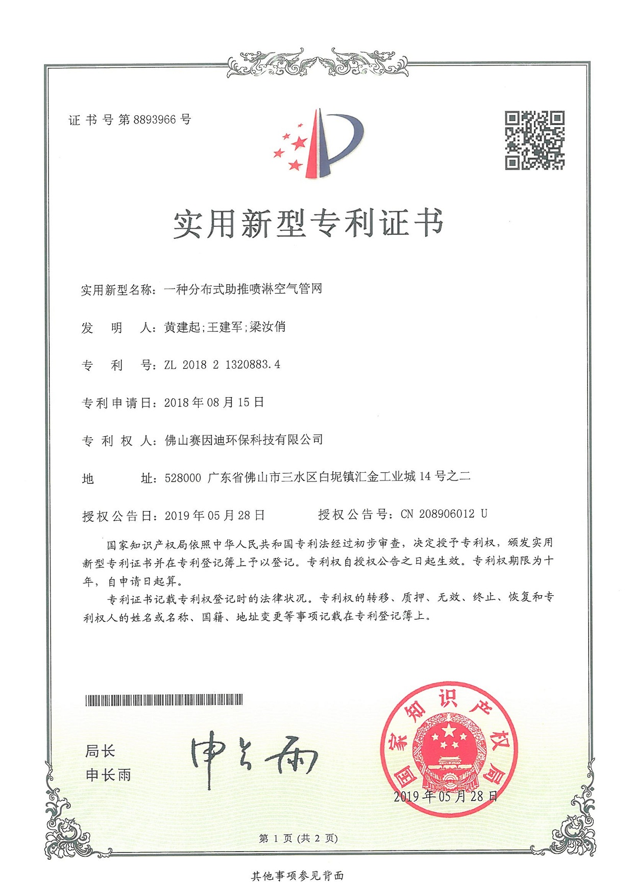 賽因迪環保專利-一種分布式助推噴淋空氣管網