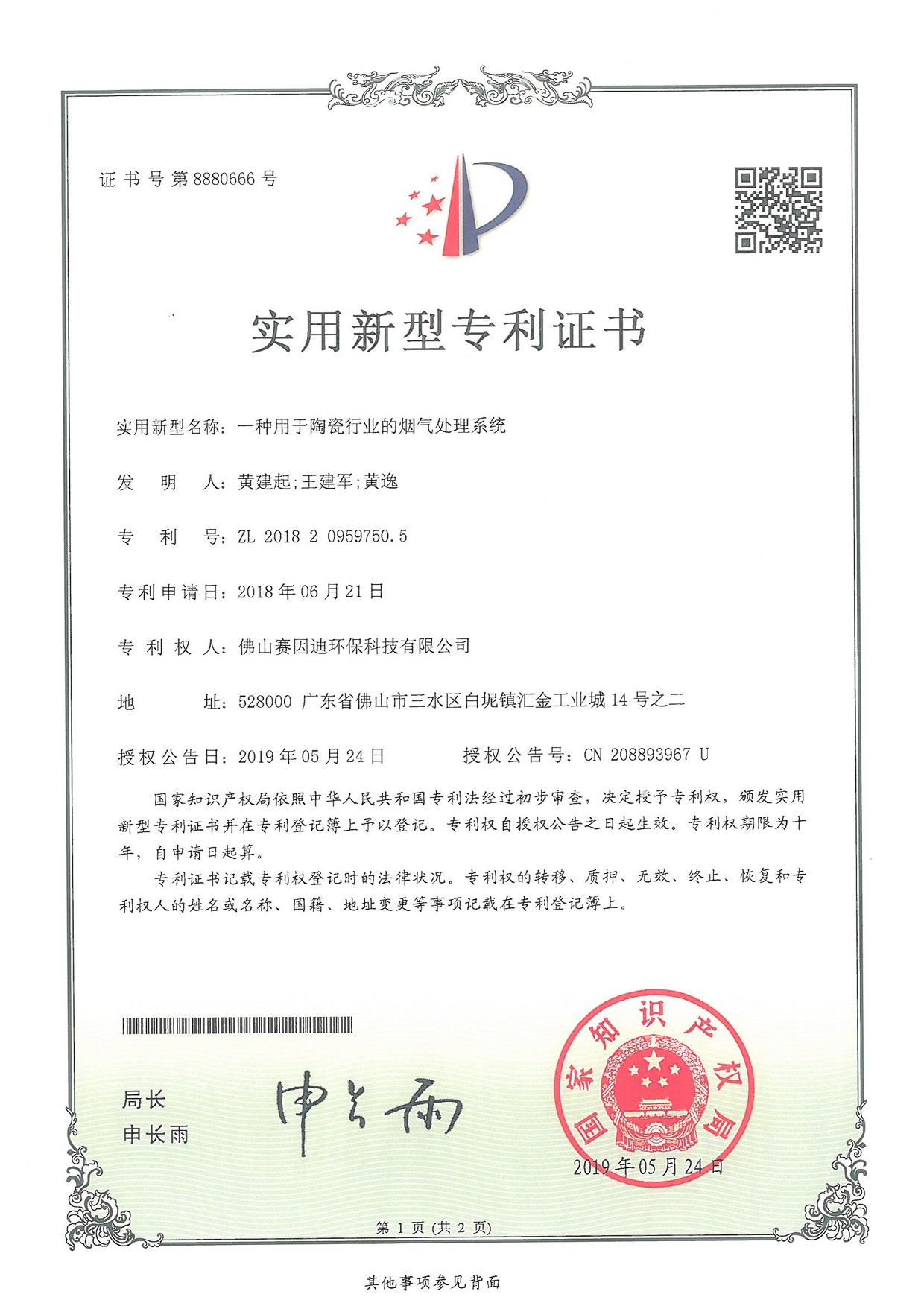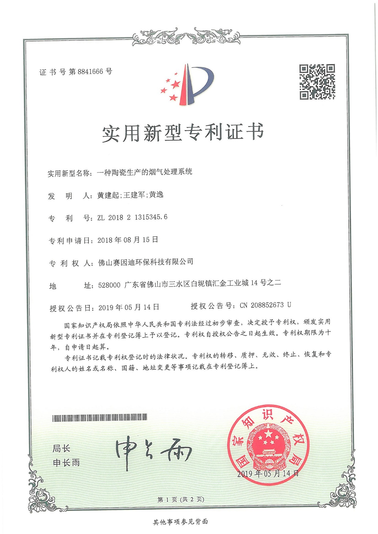 賽因迪環保專利-一種陶瓷生產的煙氣處理系統