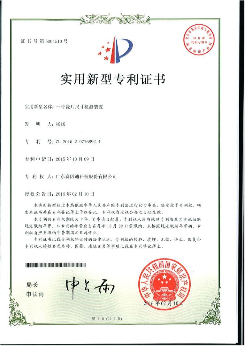 賽因迪科技專利-平面尺寸檢測機