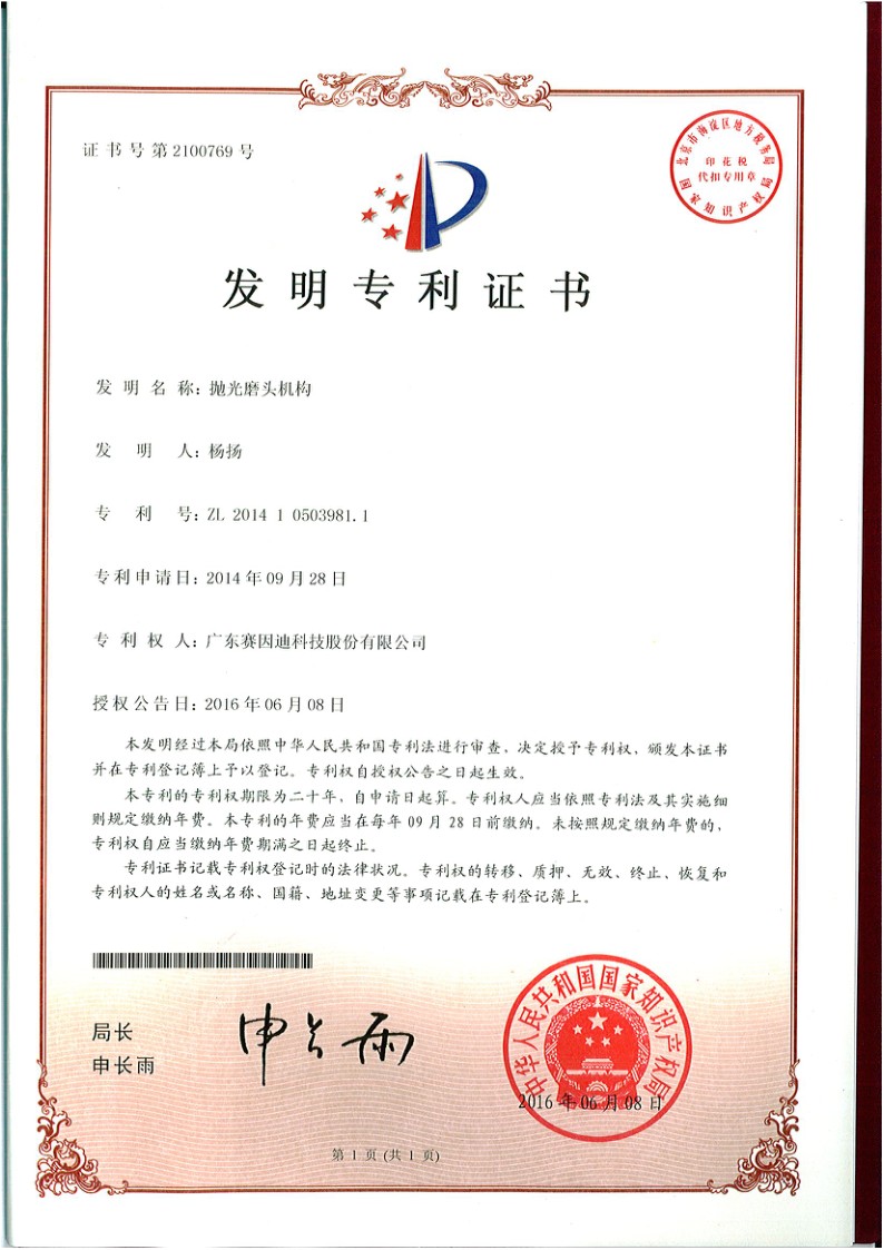 賽因迪科技專利-拋光磨頭機構