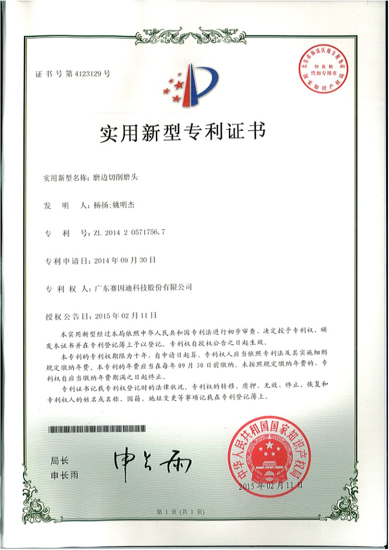賽因迪科技專利-磨邊切削磨頭