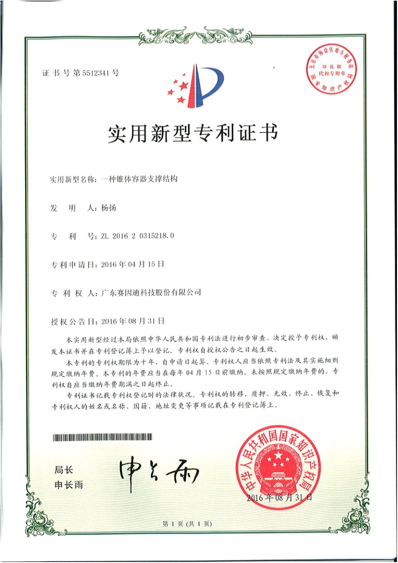 賽因迪科技專利-一種錐體容器支撐結構