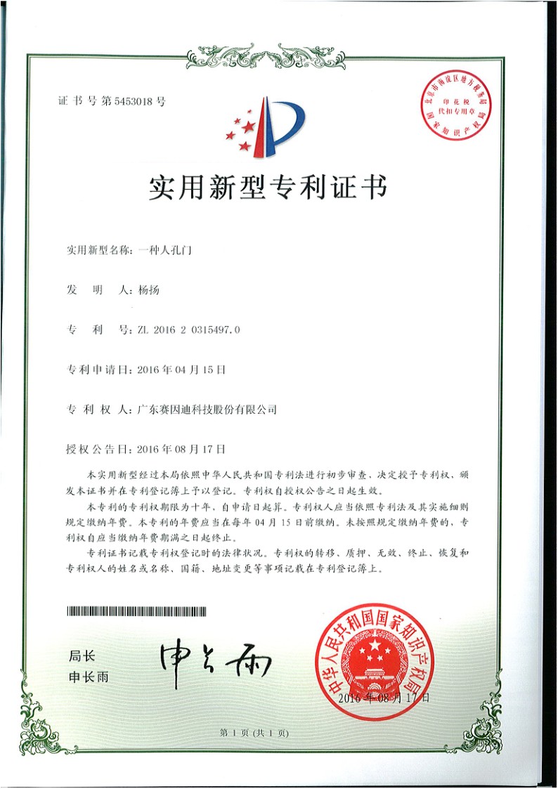 賽因迪科技專利-一種人孔門